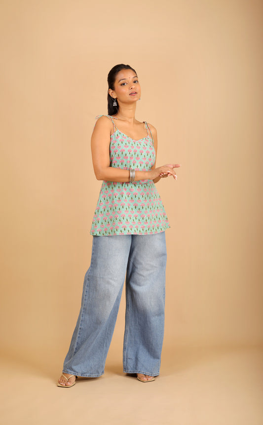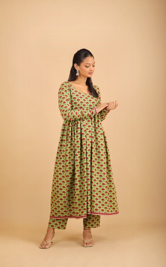 Parrot Green Nyra-Cut Cotton Kurta Set