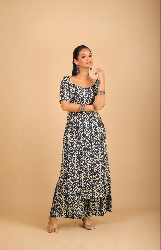 Black Printed Cotton Kurta Set with Bell Sleeves