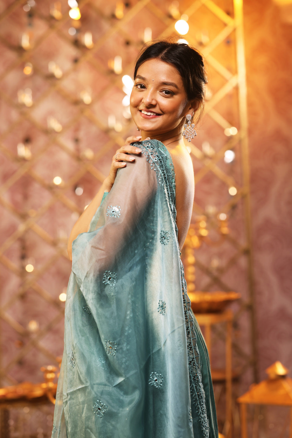 This ethereal Green Anarkali suit is perfect for a festive outing or hosting a party at home with your loved ones. Crafted in dola silk and heavily embroidered mirror work, the choli is for sure a stand out in the fit, accompanied by a muslin kurta & cambric cotton pants