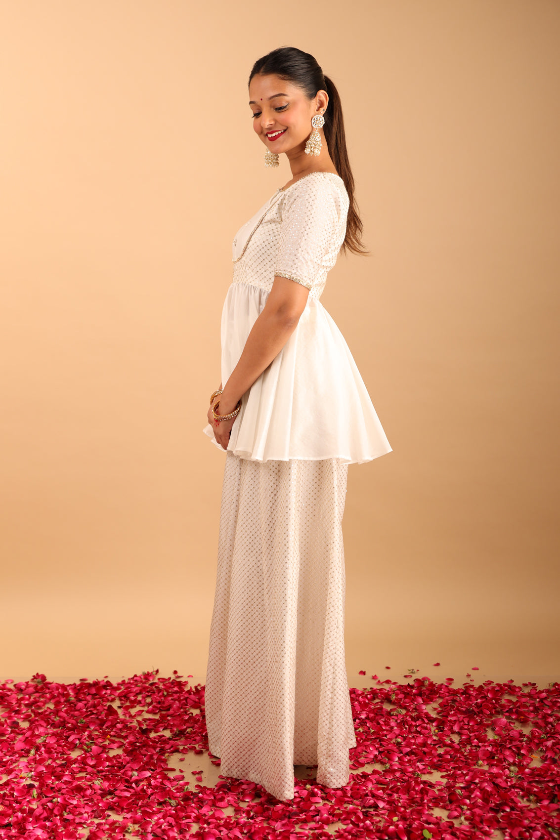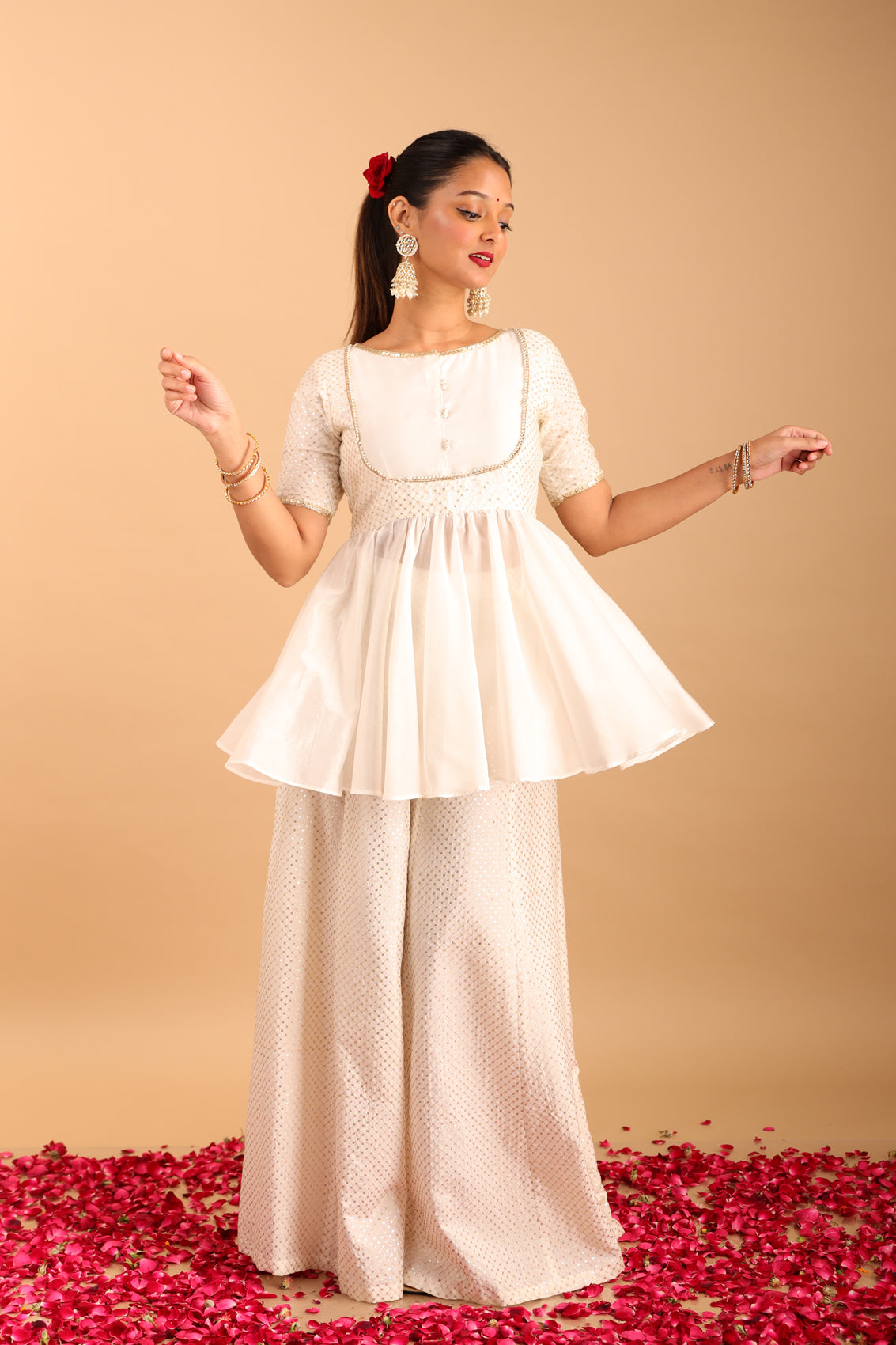 - Fabric: Chanderi Top & Dola Silk Bottom