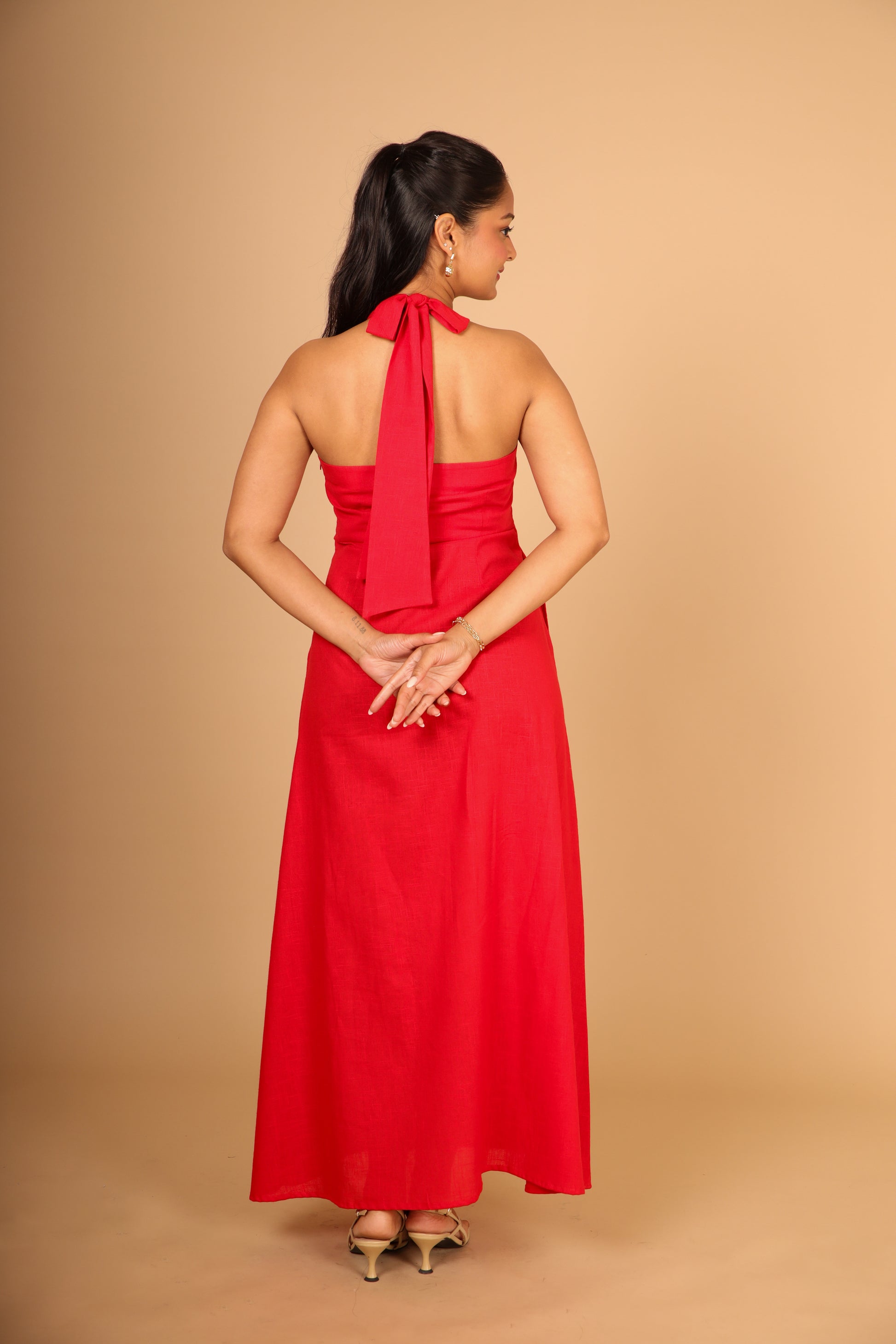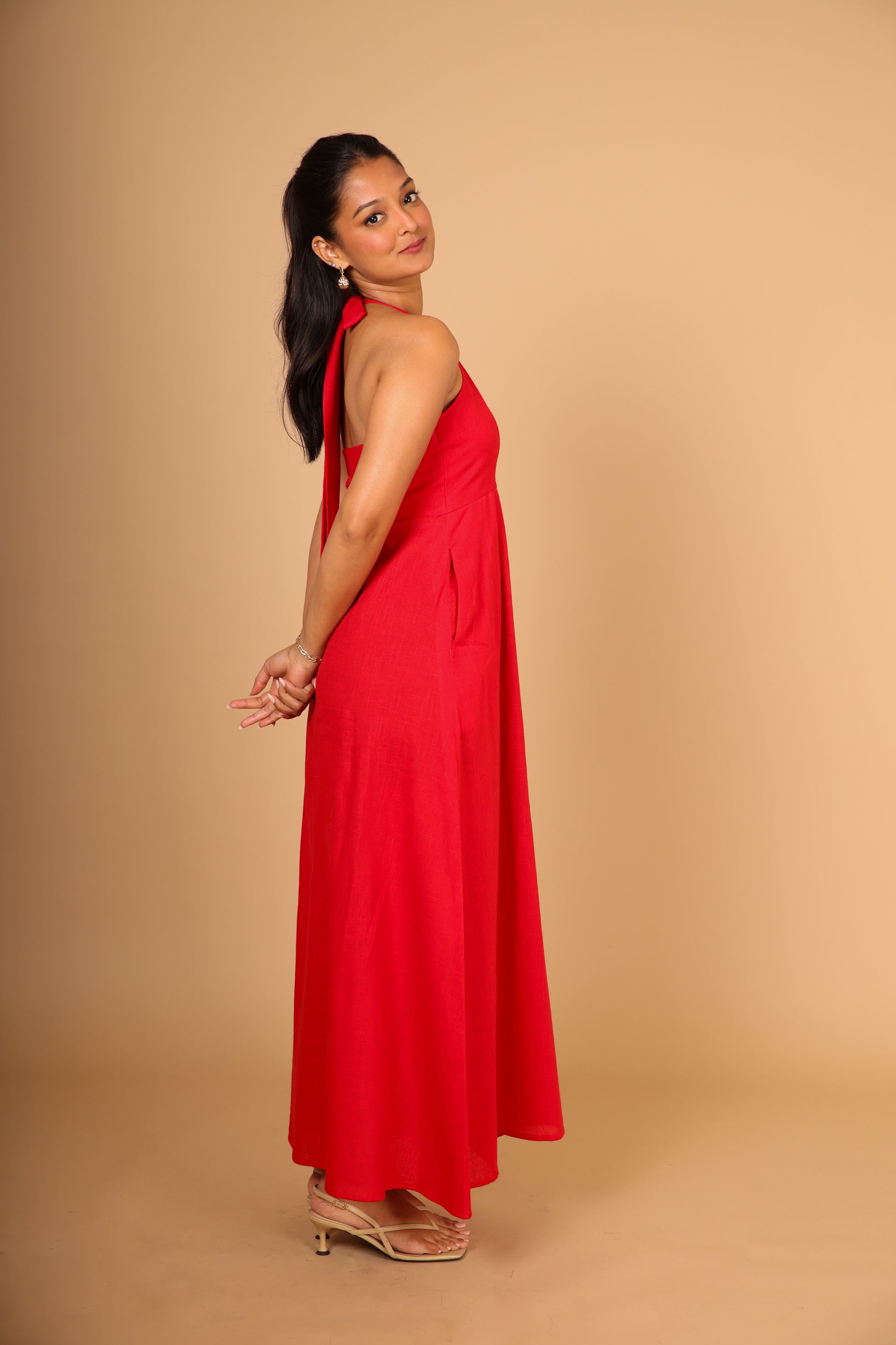 Red Halter Maxi Dress