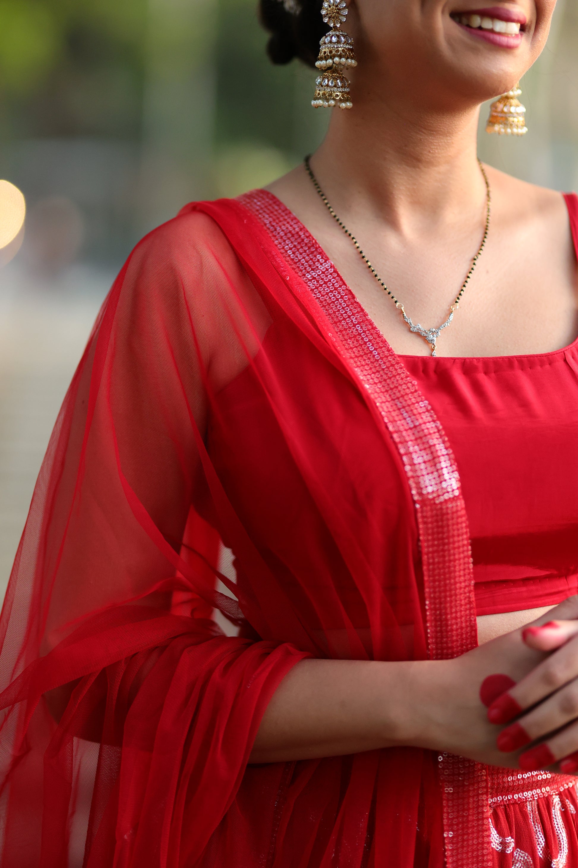 Red Sequin Lehenga (3-piece Set) Wtih Customisable Blouse