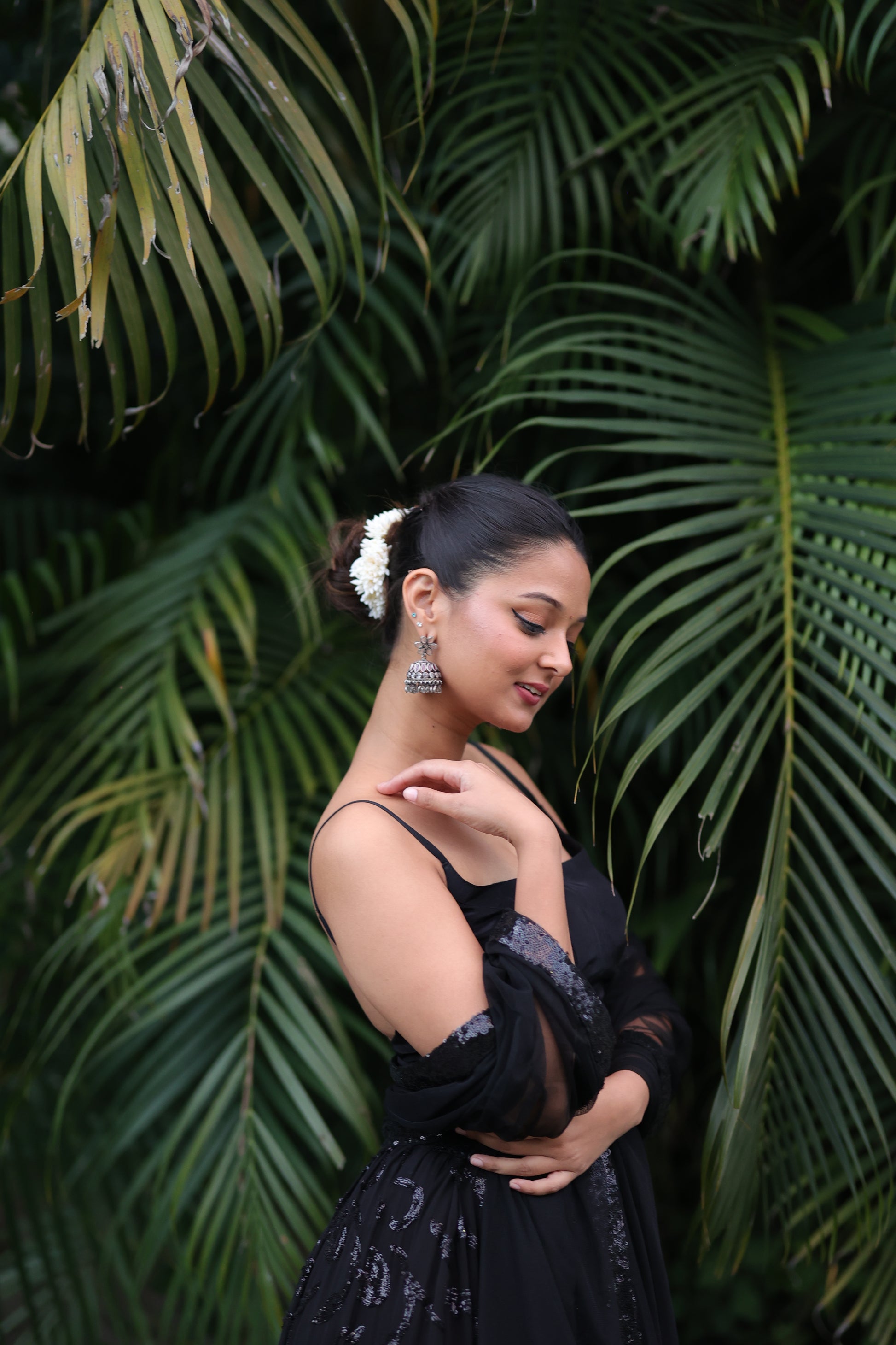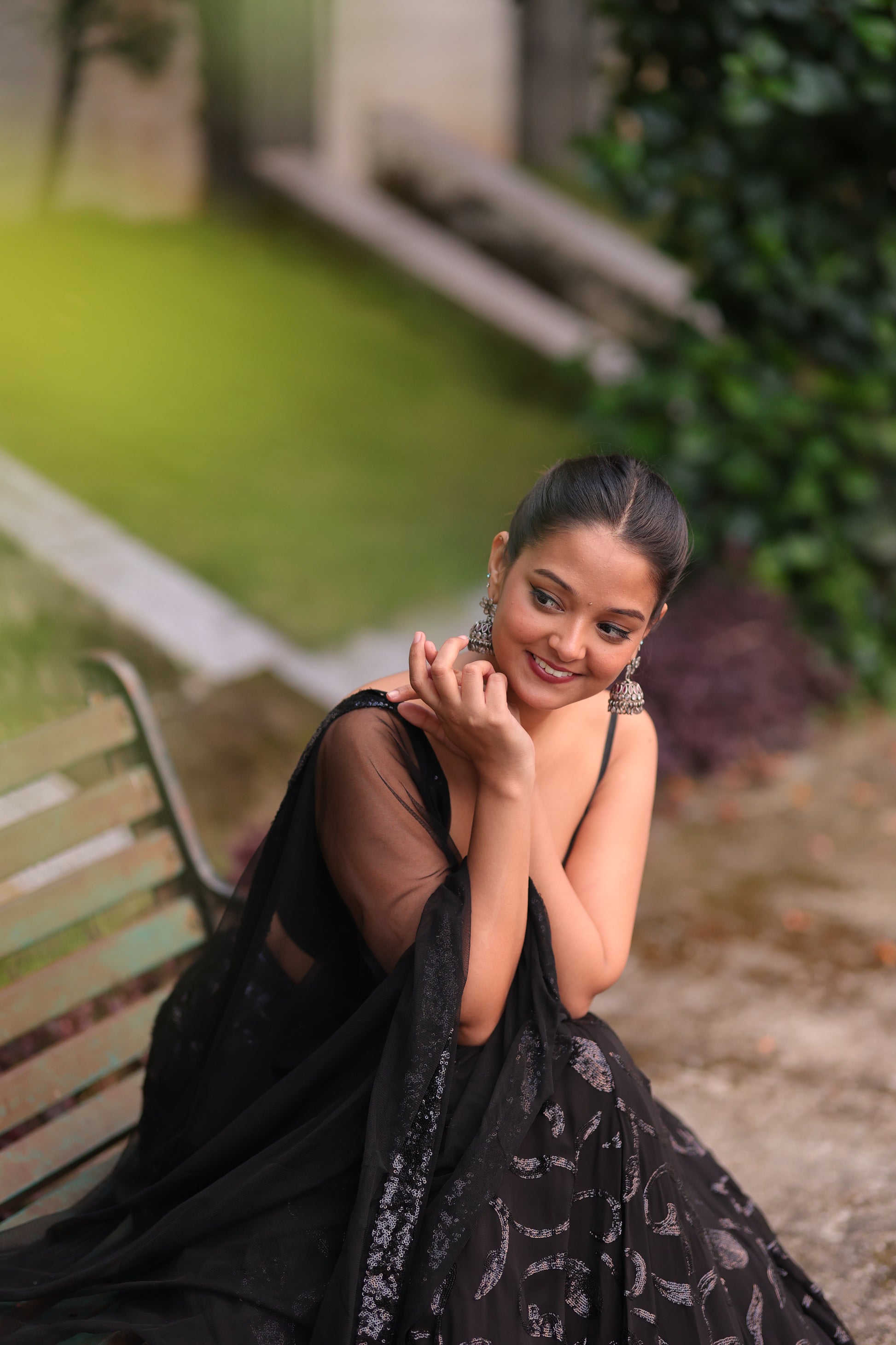 Black Sequin Lehenga (3-piece Set) With customisable blouse
