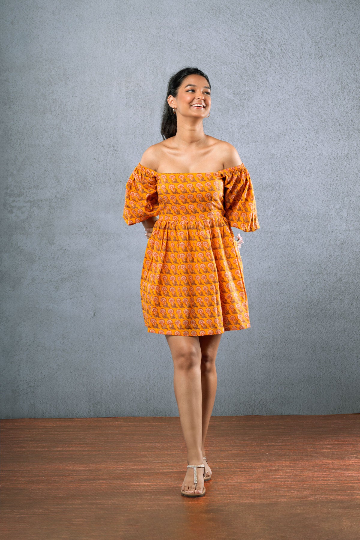 Add a touch of colour to your wardrobe with this short length floral print yellow dress. Made with cotton, this dress features balloon sleeves and a loose fit to make you cool and comfortable during days you want to dress light. Pair it with sandals and some accessories to make it the perfect dress for everyday or casual wear.